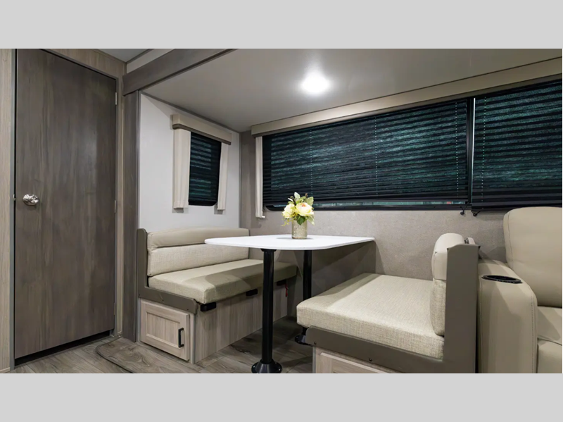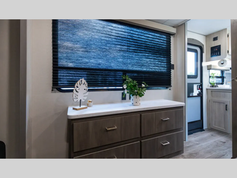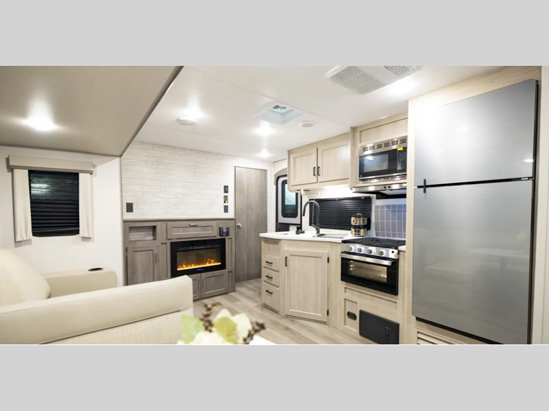 Sleeps 4 Slides 1 Length 28 ft 3 in Ext Width 8 ft Ext Height 11 ft 1 in Int Height 6 ft 9 in Hitch Weight 898 lbs GVWR 7898 lbs Dry Weight 6356 lbs Cargo Capacity 1542 lbs Fresh Water Capacity 38 gals Grey Water Capacity 44 gals Black Water Capacity 29 gals Furnace BTU 35000 btu Available Beds RV Queen Refrigerator Type GE Stainless 12V Refrigerator Size 10.7 cu ft Cooktop Burners 3 Shower Size 34" x 34" Number of Awnings 1 LP Tank Capacity 20 lbs Water Heater Type Tankless On Demand AC BTU 13500 btu Awning Info 18' Electric w/Multicolor LED Strip & Remote Axle Count 2 Number of LP Tanks 2 Shower Type Radius Electrical Service 30 amp Similar Floorplans