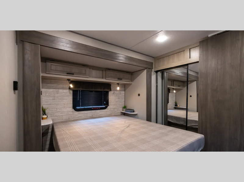 Sleeps 5 Slides 1 Length 33 ft 2 in Ext Width 8 ft Ext Height 11 ft 1 in Int Height 6 ft 9 in Hitch Weight 962 lbs GVWR 8736 lbs Dry Weight 7236 lbs Cargo Capacity 1500 lbs Fresh Water Capacity 38 gals Grey Water Capacity 74 gals Black Water Capacity 28 gals Furnace BTU 30000 btu Available Beds Queen Refrigerator Type GE Stainless 12V Refrigerator Size 10.7 cu ft Cooktop Burners 3 Shower Size 36" x 30" Number of Awnings 1 LP Tank Capacity 20 lbs Water Heater Type Tankless On Demand AC BTU 13500 btu Awning Info 21' Electric w/Multicolor LED Strip & Remote Axle Count 2 Number of LP Tanks 2 Shower Type Standard Electrical Service 30 amp Similar Floorplans