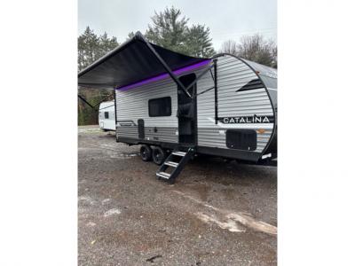 With any Catalina Summit Series 8 by Coachmen you will enjoy an affordable travel trailer packed with at-home comforts! The solid construction includes a Norco electromagnetic powder coated chassis, a seamless Alpha roof membrane, and full length frame outriggers for maximum support and durability. EZ lube axles with leaf spring suspension and self-adjusting brakes provide smooth towing from home to campground, and the premium exterior graphics package is sure to turn heads as you travel down the highway. You will love the features included, such as a JBL Aura Cube media center, magnetic baggage door latches, 4,000 lumen interior touch lighting, and the list goes on!