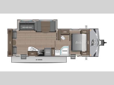 If you want to go light on weight, but not on amenities, take a look at the Jay Flight SLX travel trailers and toy haulers by Jayco! These models have real wood cabinet doors like you'd expect to find at home, along with an integrated A-frame for added support and dark tinted windows that provide UV protection and privacy!
