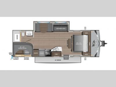 Each model is constructed with a Magnum Truss roof system, which is one of the strongest roofs in the industry, capable of withstanding 50% more weight. The axle(s) with electric, self-adjusting brakes and easy-lube hubs will make towing easier than ever, and the stabilizer jacks will give you peace of mind as you set up camp. Inside, you'll love the residential-style kitchen countertops and vinyl flooring throughout, plus there is an on-demand tankless water heater on board for hot water when you need it!