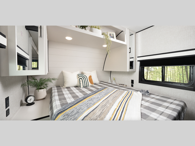 Sleeps 5 Slides 2 Int Height 6 ft 9 in Interior Color Classic Farmhouse Tire Size ST225/75R15E Available Beds Queen Refrigerator Type 12V Refrigerator Size 11 cu ft Cooktop Burners 3 Number of Awnings 1 LP Tank Capacity 20 lbs Water Heater Type On Demand Tankless AC BTU 13500 btu Awning Info 18' Power with LED Lights Axle Count 2 Washer/Dryer Available Yes Number of LP Tanks 2 Shower Type Radius Similar Floorplans